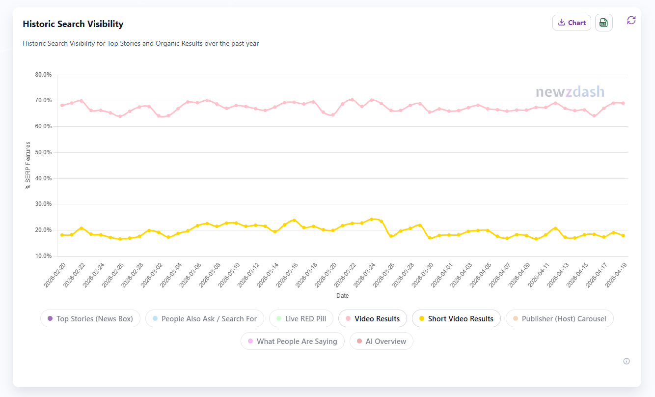 How NewzDash helps: NewzDash tracks video and short-form video visibility inside Google and Discover, showing publishers which video formats drive discovery and which sit unseen.